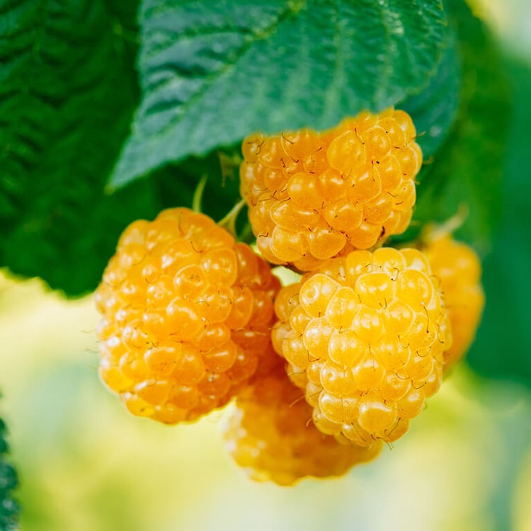 Кусты обычно показывают среднюю силу своего роста, достигая в высоту порядка полутора метров, но при хорошем уровне агротехники вегетативная активность может значительно усиливаться. По внешнему виду растения выглядят достаточно мощными и слабораскидистыми, но, несмотря на это, нуждаются в подвязке к опорам или шпалере, без которых возникает риск повреждения стеблей в ненастную погоду, а также склонения к земле под тяжестью урожая. Шипы вырастают мелкими, зеленоватыми или неокрашенным, но при этом довольно многочисленными и равномерно распределенными по всей длине побегов. Впрочем, этот факт не несет за собой особых проблем и неудобств в процессе возделывания и ухода за кустами этого сорта. Во время цветения кусты Желтого гиганта приобретают очень декоративный вид благодаря многочисленным крупным цветкам с длинными чашелистиками. В средней полосе нашей страны первыми ягодами можно начинать лакомиться в первой декаде июля, а завершаются массовые сборы к началу августа. За сезон каждое растение способно дать до 3-4 кг малины с куста. По размеру созревших плодов сорт оправдывает свое название, являясь одним из самых крупных среди желтоокрашенных разновидностей. Средний вес ягоды колеблется в пределах 4-8 грамм, а самые выдающиеся могут превышать массу и в 10 грамм. По внешнему виду они имеют слабоокруглую или тупоконическую форму и светло-желтый матовый цвет из-за имеющегося на поверхности легкого воскового налета. Мякоть нежная, сочная и очень сладкая, обладающая к тому же приятным, типично малиновым ароматом.