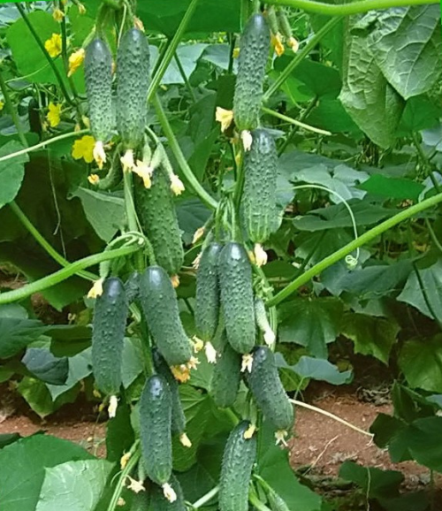 - Плоды: Цилиндрические, выравненные, темно-зеленые, крупнобугорчатые, белошипые, без горечи, длина 8-10 см.