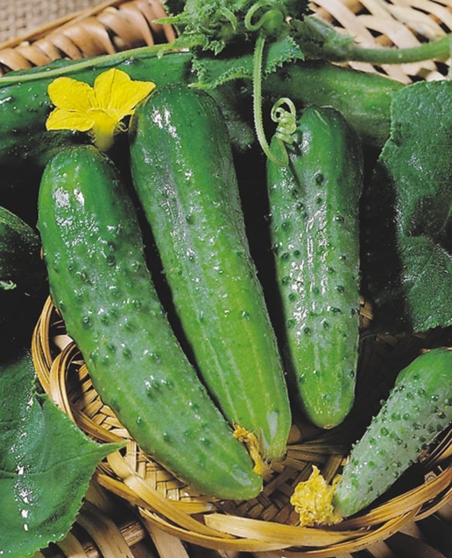 Огурец «Зозуля F1» — раннеспелый (40–45 дней), высокоурожайный партенокарпический гибрид, идеально подходящий для теплиц и парников. Зеленцы цилиндрические (15–24 см), массой 150–300 г, слабобугорчатые, без горечи. Устойчив к болезням (мозаика, пятнистость), не желтеет, отлично подходит для салатов и, пока молодые, для засолки.