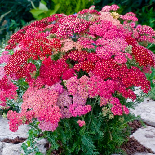 Тысячелистник обыкновенный Флаверберст Ред Шейдс - очень декоративный, необычный сорт с яркими, красивыми цветами. На одном кусте одновременно зацветают соцветия разных оттенков. Розовые, бордовые, красные, фиолетовые цветки украшают куст с июня по сентябрь.